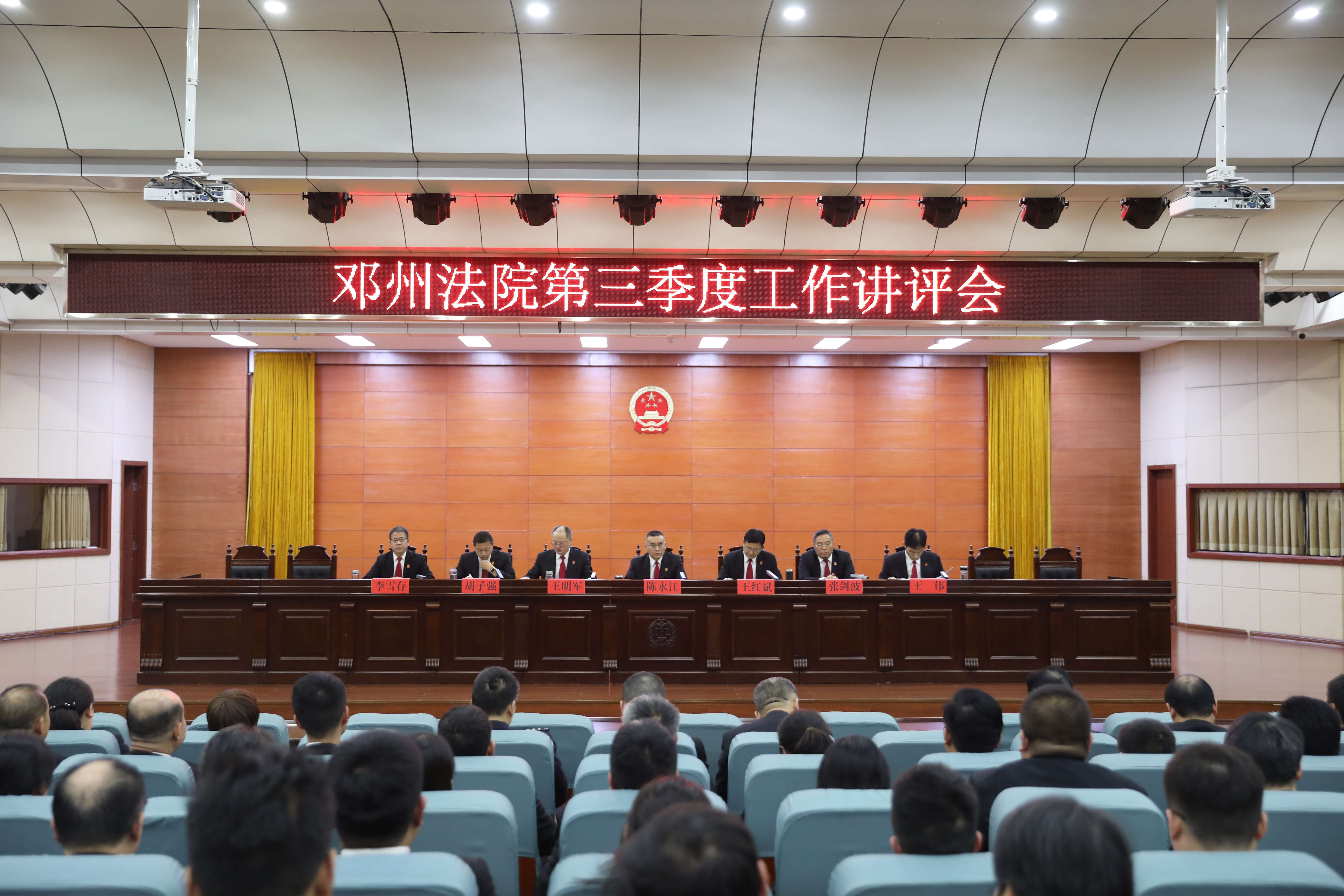 10月13日下午,邓州市人民法院召开2025年第三季度工作讲评会,全面回顾总结前三季度审执质效运行情况,并对第四季度重点工作进行安排部署。院党组书记、院长陈永江出席会议并讲话,全体在编干警参加会议。