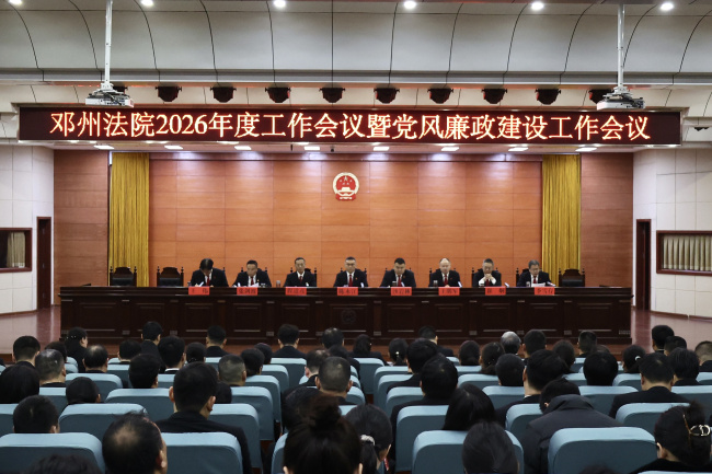 为认真贯彻落实中央、省委、市委和上级法院等一系列重要会议精神,全面回顾总结2025年的工作,分析当前面临的形势和任务,安排部署2026年工作,3月13日上午,邓州法院召开2026年工作会暨党风廉政建设工作会。党组书记、院长陈永江出席会议并讲话,全体干警参加会议。